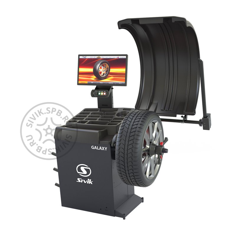 Sivik GALAXY NEW (Гелакси) – обновленный балансировочный стенд класса Премиум, автоматический ввод параметров балансируемого колеса, с интеллектуальным приводом и информационным LCD-монитором 21″. Благодаря легкому меню и голосовым подсказкам, станком может пользоваться даже начинающий специалист. Автоопределение схемы установки и типа грузов, автодоворот до места установки. Полный цикл балансировки без использования клавиатуры и меню станка. Голосовое подтверждение результатов балансировки.