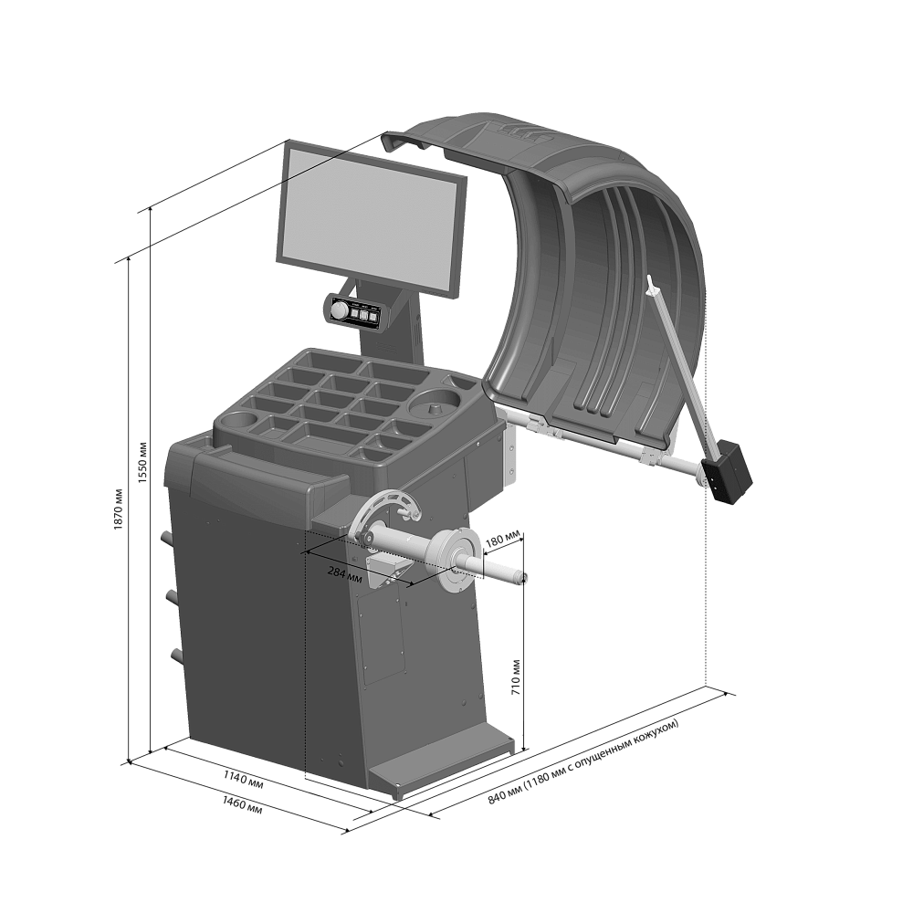 - Вал станка смещен к оператору. Вылет вала максимальный, удобно обслуживать большие и широкие колеса