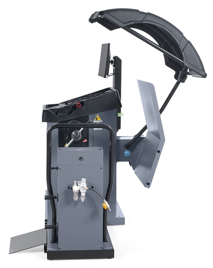 Полуавтоматический балансировочный станок для колес легковых автомобилей, мотоциклов и легких грузовиков. Автозапуск опусканием кожуха. Для колес легковых автомобилей, мотоциклов, «Газелей», «Спринтеров» и т.п.