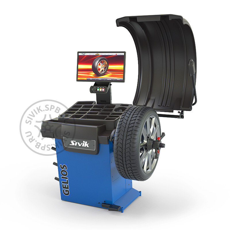 Sivik GELIOS NEW УЗ + ТЛУ (Гелиос УЗ + ТЛУ) - обновленная версия (серийное производство - с 01.07.2021 г.) балансировочного станка с автоматическим вводом всех параметров балансируемого колеса, с ЖК-дисплеем высокого разрешения 22″, для балансировки дисков диаметром 10″-28″.