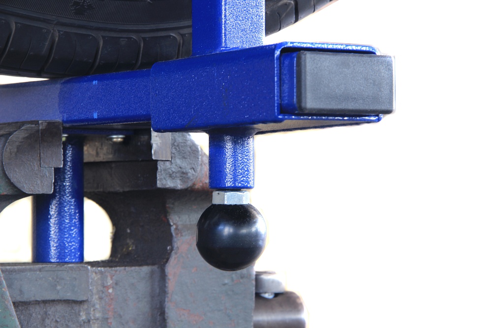Прибор имеет простую конструкцию: это опорная планка с крюками-зажимами, которые устанавливаются на борта шины, а затем разводятся в стороны нажатием на рычаг. Один зажим может перемещаться по планке, позволяя устанавливать покрышки различной ширины, и закрепляется винтом.