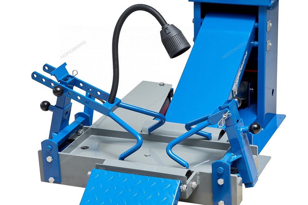 Пневматический борторасширитель NORDBERG D5 для шин грузовых автомобилей с установочным столом и подъемником разработан для фиксации шины, расширения ее бортов и подъема во время ремонта.