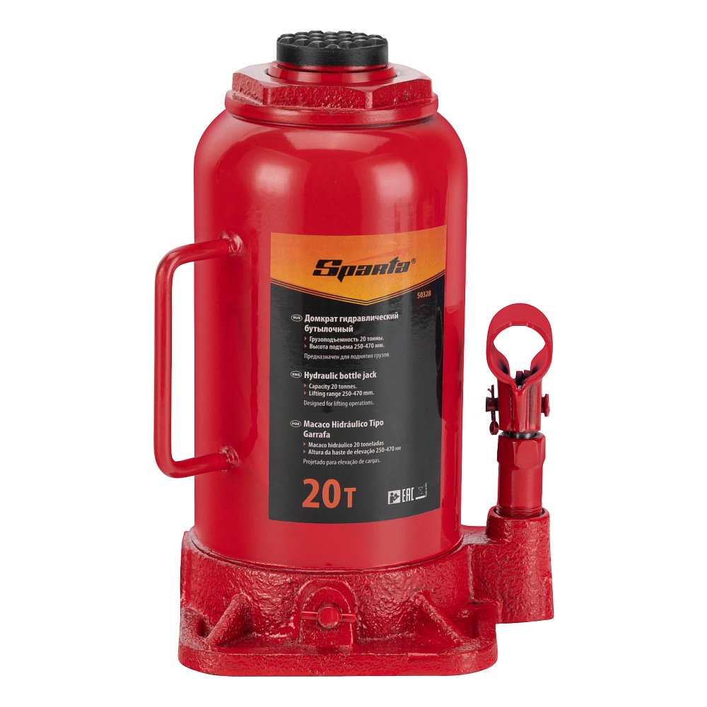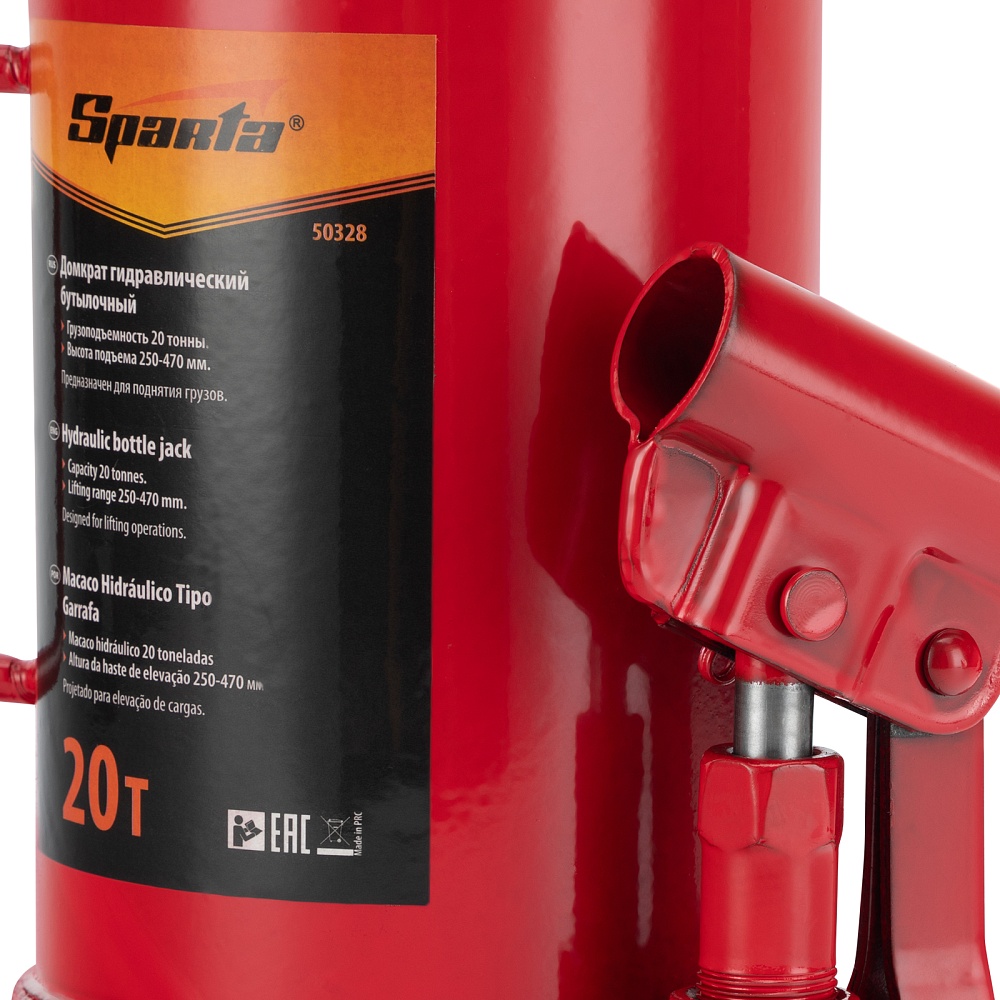 Домкрат гидравлический бутылочный, 20 т, h подъема 250-470 мм Sparta