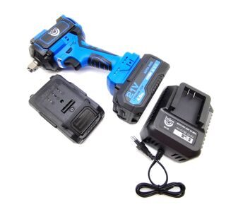 Мощный ударный аккумуляторный гайковерт BRANN для закручивания и откручивания болтов и гаек, с максимальным крутящим моментом 500 Нм. Присоединительный квадрат 1/2.” Поставляется в кейсе, с зарядным устройством и двумя аккумуляторами.