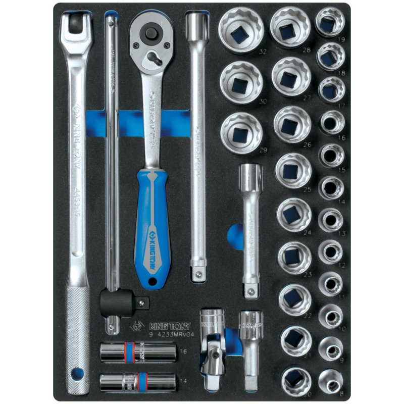 KING TONY Набор торцевых головок 1/2" с принадлежностями, двенадцатигранные, ложемент, 33 предмета KING TONY 9-4233MRV04 купить в Воронеже цена ✅ - Все для СТО