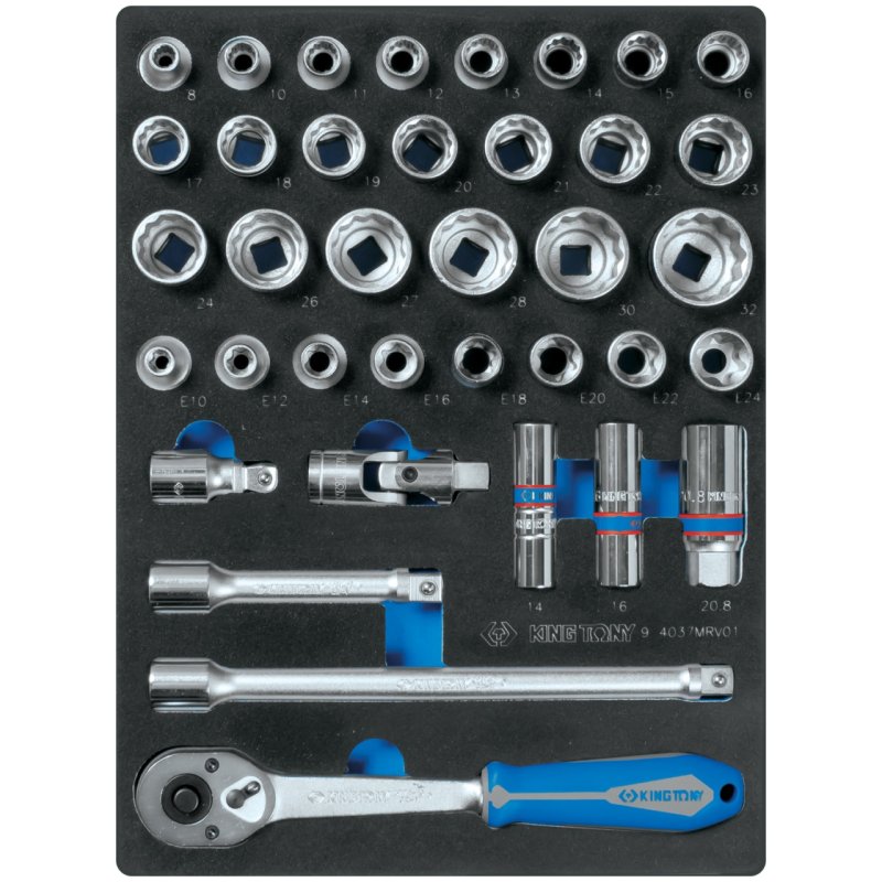 KING TONY Набор торцевых головок 1/2" с принадлежностями, двенадцатигранные, ложемент, 37 предметов KING TONY 9-4037MRV01 купить в Воронеже цена ✅ - Все для СТО