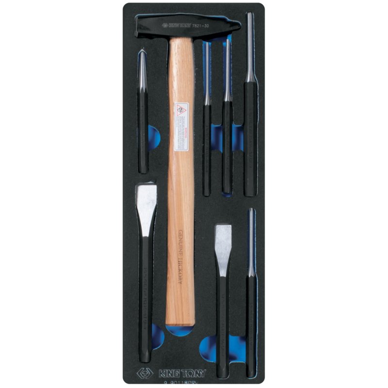 KING TONY Набор зубил, выколоток, кернеров с молотком, ложемент, 8 предметов KING TONY 9-90118PRV купить в Воронеже цена ✅ - Все для СТО
