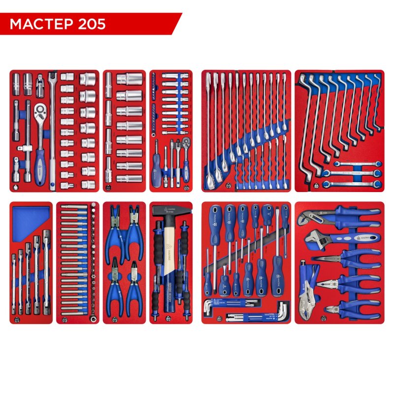 МАСТАК Набор инструментов "МАСТЕР" для тележки, 11 ложементов, 205 предметов купить в Воронеже цена ✅ - Все для СТО