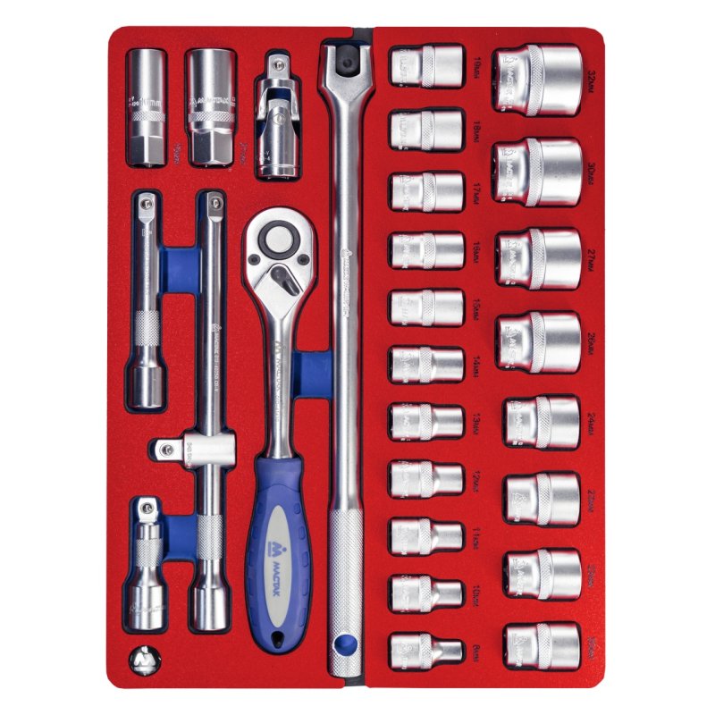 МАСТАК Набор торцевых головок 1/2" с принадлежностями, шестигранные, ложемент, 28 предметов МАСТАК 5-004028