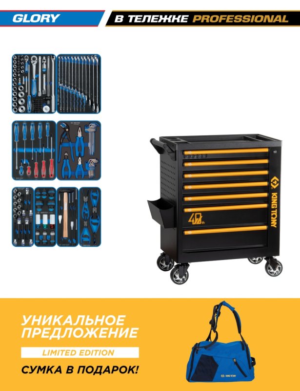 Набор инструментов 152 предмета, "GLORY", в черной тележке KING TONY 9G38-152MRV40 купить в Воронеже цена ✅ - Все для СТО