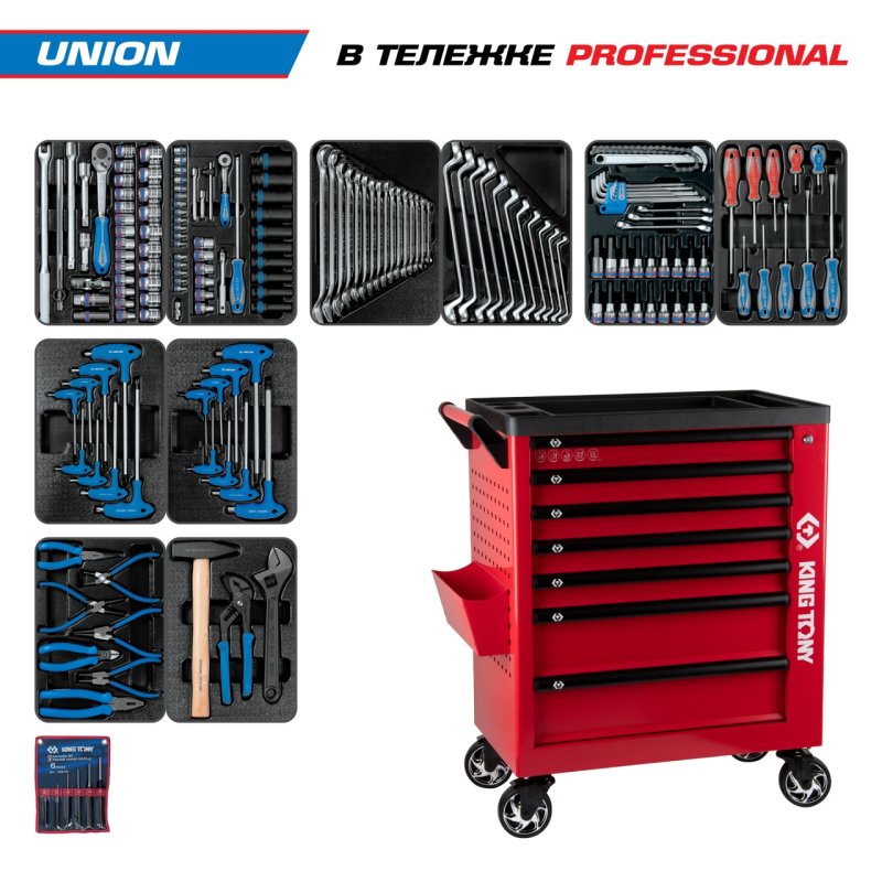 Набор инструментов 173 предмета, "UNION", в красной тележке KING TONY 9G38-000MRR купить в Воронеже цена ✅ - Все для СТО