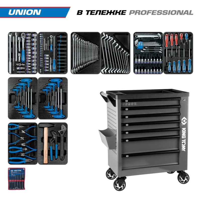 Набор инструментов 173 предмета, "UNION", в серой тележке KING TONY 9G38-000MRG купить в Воронеже цена ✅ - Все для СТО