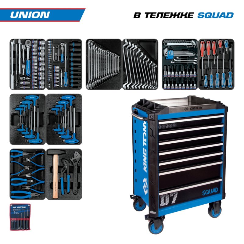 Набор инструментов 173 предмета, "UNION", в синей тележке KING TONY 9SQ31-000MR купить в Воронеже цена ✅ - Все для СТО