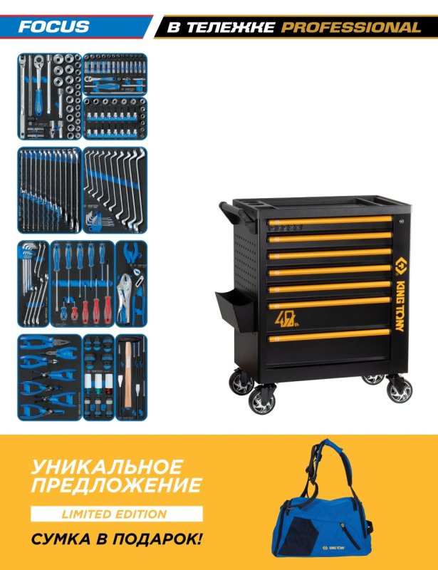 Набор инструментов 188 предметов, "FOCUS", в черной тележке KING TONY 9G38-188MRV40 купить в Воронеже цена ✅ - Все для СТО