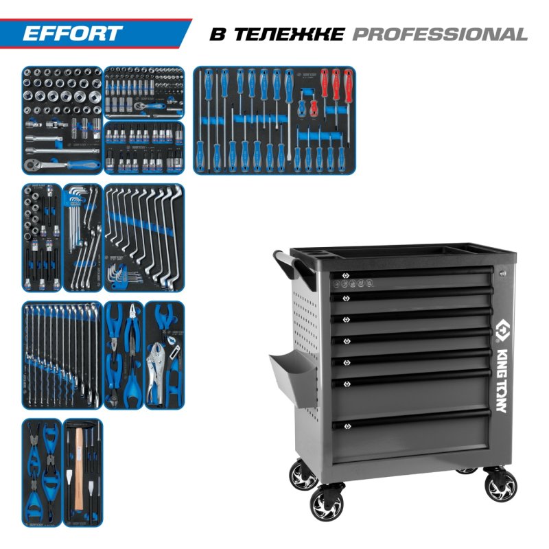 Набор инструментов 235 предметов, "EFFORT", в серой тележке KING TONY 9G38-235MRVG купить в Воронеже цена ✅ - Все для СТО