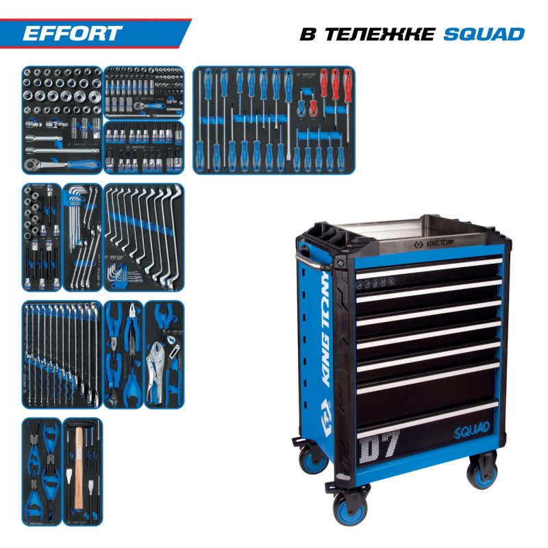Набор инструментов 235 предметов, "EFFORT", в синей тележке KING TONY 9SQ31-235MRV купить в Воронеже цена ✅ - Все для СТО