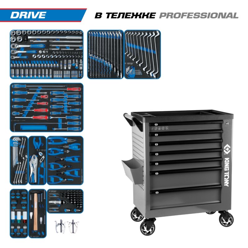 Набор инструментов 251 предмет, "DRIVE", в серой тележке KING TONY 9G38-251MRVG купить в Воронеже цена ✅ - Все для СТО