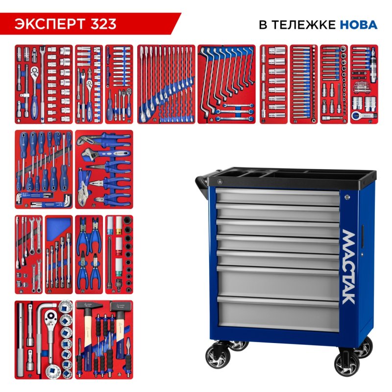 Набор инструментов 323 предмета, "ЭКСПЕРТ 323", в синей тележке МАСТАК 50-07323B купить в Воронеже цена ✅ - Все для СТО