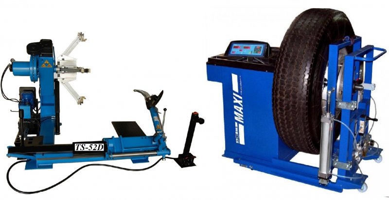Комплект из TS-52D грузового шиномонтажного станка для дисков 14”-42”,  с удлинителями на захваты до 52” - очень качественный станок. За последние 9 лет ни одной рекламации!!!  Диски сталь + ALU Ø 14÷42” с адаптерами 14÷52”(опция). Автомат. Максимальное колесо Ø2300 ширина1050мм, вес до 1600кг. Моторы 2,2 + 2,2 кВт, 380В. Гарантия 12÷18мес. Гидронасос «BUCHER HIDRAULICS». Cтанок подходит для тракторов, сельхозтехники, еврофур и т.п. + ЛС-32 MAXY P Универсальный грузовой балансировочный станок для колес диаметром от 10 до 30 дюймов, имеет две программы для работы с легковыми и грузовыми колесами. Максимальный вес колеса до 200 кг. Оснащен функциями автокалибровки и самодиагностики.В стандартный комплект входит набор конусов для установки колес легковых автомобилей, микроавтобусов и легковых грузовиков типа "Газель", а также универсальный адаптер для установки колес большинства типов грузовых автомобилей. Для установки тяжелых колес ЛС 32 MAXIP комплектуется подкатной тележкой с пневматическим подъемным механизмом. Внесен в реестр средств измерений России Казахстана и Респ. Беларусь