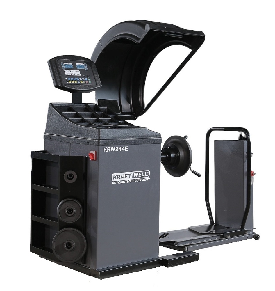 Балансировочный станок KraftWell VERTA KRW244E – обеспечивает балансировку грузовых и легковых колес до 150 кг. Ручной ввод параметров, LED-дисплей, четыре режима балансировки: ALU-1, ALU-2, ALU-4, STATIC. Пневматическое подъемное устройство, точный вал 40 мм, низкий уровень шума (<70 dB), эргономичный стол с отделениями для грузиков.