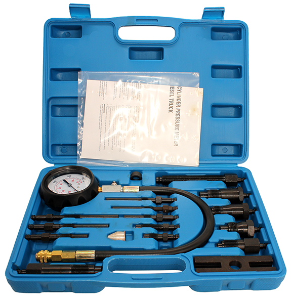 Этот комплект используется для определения компрессии моторов дизелей, которые относятся к любым типам транспорта, как с обычным, так и с прямым впрыскиванием. Еще применяется в промышленных двигателях и лодочных моторах.