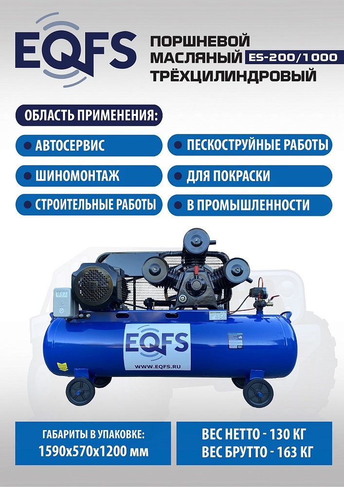 ES-200/1000 Компрессор поршневой трехцилиндровый 200 литров