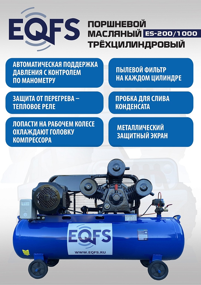 ES-200/1000 Компрессор поршневой трехцилиндровый 200 литров купить в Воронеже цена ✅ - Все для СТО