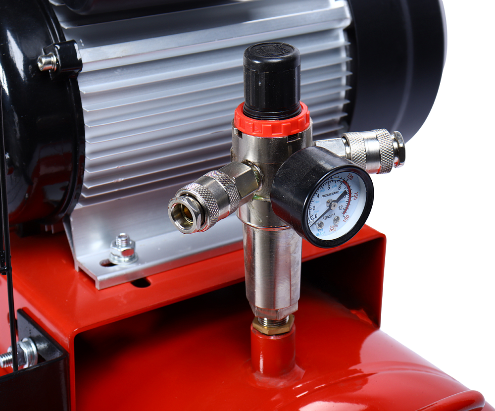 Поршневой воздушный компрессор Huberth RP30656A с ремённым приводом оснащён 100-л ресивером вертикального расположения и рассчитан на эксплуатацию на автостанциях, шиномонтажных мастерских, в промышленности и прочих сферах деятельности, где регулярно требуется применение сжатого воздуха. После проверки уровня масла, подключения к электросети и воздушным коммуникациям компрессор готов к работе.