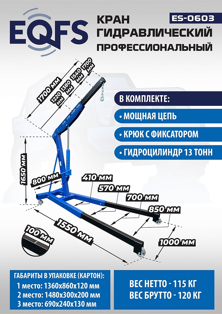 ES-0603 Кран гаражный, 3 т купить в Воронеже цена ✅ - Все для СТО