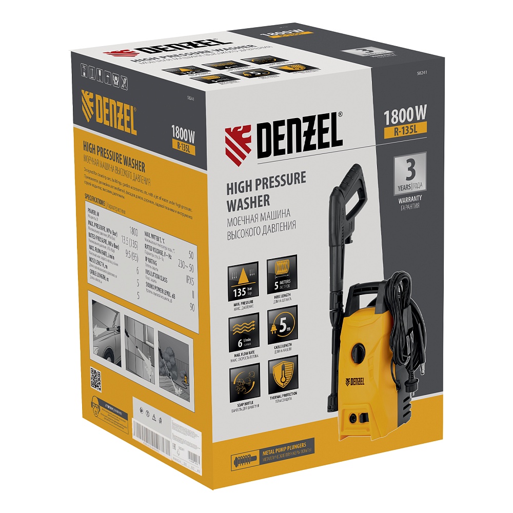 Моечная машина высокого давления R-135L, 1800 Вт, 135 бар, 360 л/ч Denzel