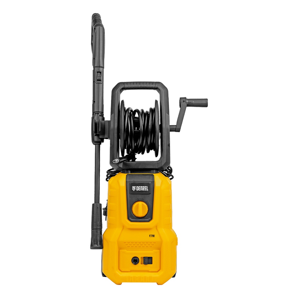 <p>Моечная машина высокого давления Denzel R-170D 58263 с барабаном, мощностью 1800 Вт, поддерживает максимальное рабочее давление 170 бар и обеспечивает объем подачи воды 380 л/ч. Позволяет быстро и эффективно очистить садовый инвентарь, фасад дома, дорожку, отмыть автомобиль и т.д. Оснащена самовсасывающим насосом, поэтому может работать даже без подключения к водопроводу — подойдет любой резервуар или емкость с водой. Машина оптимальна для бытового использования.</p><h2>Преимущества</h2><ul><li>Долговечность — надежная алюминиевая помпа со стальными плунжерами выдерживает высокие нагрузки и обеспечивает стабильное давление в течение всего срока службы машины.</li><li>Эффективное очищение — для получения качественного результата можно использовать моющее средство (пеногенератор входит в комплект поставки).</li><li>Простая подготовка к работе — быстросъемный адаптер облегчает подключение шланга подачи воды.</li><li>Защита от засорения — фильтр входного штуцера задерживает посторонние частицы, продлевая срок службы помпы.</li><li>Продуманная комплектация — машина поставляется с иглой для прочистки сопла, что упрощает уход за техникой.</li><li>Класс защиты II — токопроводящие элементы надежно изолированы для защиты пользователя от получения электротравмы.</li><li>Безопасность — перед началом работы необходимо разблокировать рычаг моечного пистолета для предотвращения случайного запуска.</li><li>Защита от превышения максимально допустимого давления — машина оснащена перепускным клапаном, манометрический выключатель останавливает насос при отпущенном рычаге пистолета.</li><li>Термозащита — производитель предусмотрел датчик температуры и автоматическое отключение двигателя при перегреве.</li><li>Комфортная эксплуатация — барабан для шланга высокого давления упрощает работу, длина кабеля и шланга высокого давления составляет 5 м, что позволяет свободно передвигаться по участку.</li><li>Мобильность — благодаря рукоятке и колесам моечную машину удобно перемещать.</li><li>Гарантия 3 года — высокое качество техники подтверждено производителем.</li></ul>