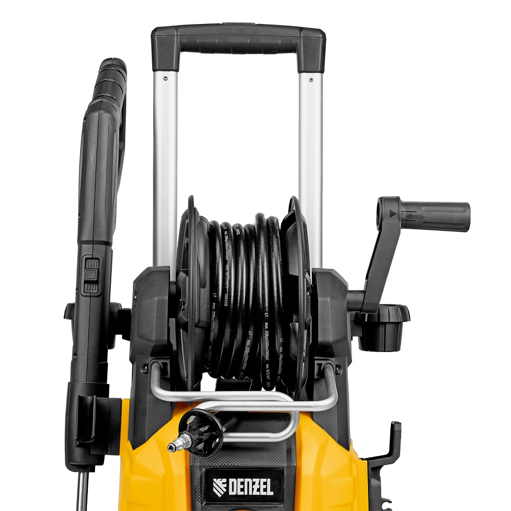 <p>Моечная машина высокого давления Denzel R-200D 58264 мощностью 2400 Вт, с барабаном, используется для мытья дорожек, тротуаров, фасадов зданий, автомобилей, окон, садовой мебели и инвентаря. Максимальное давление составляет 200 бар, производительность — 420 л/ч. Мойка подключается к водопроводной сети, а в случае ее отсутствия может забирать воду из любого открытого резервуара, работая в режиме самовсасывания. Надежная алюминиевая помпа со стальными плунжерами обеспечивает стабильное давление даже при длительном интенсивном использовании. Техника незаменима на дачном участке. </p><h2>Преимущества</h2><ul><li>Максимально эффективное очищение — к мойке прилагается внешний пенокомплект с функцией улучшенного пенообразования, быстросъемное крепление позволяет устанавливать его на пистолет одним движением.</li><li>Выбор оптимального угла распыления — машина поставляется с 3 насадками: 0°, 25° и 40°.</li><li>Быстрая подготовка к работе — быстросъемный адаптер упрощает подключение шланга подачи воды.</li><li>Качественная фильтрация — посторонние частицы задерживаются на входе, что защищает помпу от поломки.</li><li>Защита от случайного пуска — перед началом работы необходимо разблокировать рычаг моечного пистолета.</li><li>Защита от превышения допустимого давления — машина оснащена перепускным клапаном, пневматическое реле останавливает насос при отпущенном рычаге пистолета и запускает после нажатия на курок.</li><li>Термозащита — производитель предусмотрел датчик температуры, электродвигатель автоматически отключается при перегреве.</li><li>Максимально комфортное передвижение — длина шнура питания составляет 5 м, длина шланга высокого давления увеличена до 8 м.</li><li>Удобное использование — функциональный барабан подключен к магистрали высокого давления, поэтому вы можете разматывать и убирать шланг на барабан, не отсоединяя его от мойки.</li><li>Степень защиты IPX5 — внутренние компоненты надежно изолированы от попадания воды.</li><li>Мобильность — благодаря колесам и телескопической рукоятке машину удобно перемещать по участку.</li><li>Несложный уход — в комплект поставки входит игла для прочистки сопла.</li><li>Продуманное хранение — в конструкции предусмотрен кронштейн для кабеля, а также держатели для аксессуаров.</li><li>Гарантия 3 года — надежность техники подтверждена производителем.</li></ul>