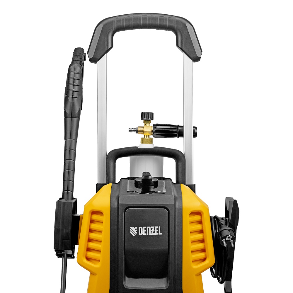 <p>Моечная машина высокого давления Denzel R-230iD 58267 с асинхронным двигателем мощностью 3300 Вт и барабаном для шланга предназначена для очищения поверхностей струей воды под давлением. Подходит для мытья дорожек, фасадов, автомобилей, садовых принадлежностей и т.д. Асинхронный двигатель устойчив к нагрузкам и выдерживает длительное интенсивное использование, а также не требует сложного обслуживания. Расход воды составляет 600 л/ч. Мойка способна работать в режиме самовсасывания и забирать воду из любого резервуара при отсутствии доступа к водопроводу. Машина рекомендована для применения в быту.</p><h2>Преимущества</h2><ul><li>Надежность — алюминиевая помпа со стальными плунжерами обеспечивает стабильное давление даже при длительной активной эксплуатации.</li><li>Эффективное решение поставленных задач — 3 форсунки позволяют осуществлять распыление под углом 0, 25 и 40°.</li><li>Удаление сильных загрязнений — в комплект поставки входит пеногенератор с улучшенной функцией пенообразования, латунным корпусом и увеличенным бачком для моющего средства объемом 1000 мл.</li><li>Простая подготовка к работе — удлинитель пистолета с быстросъемным креплением позволяет легко изменить угол распыла, установив нужную форсунку, или перейти к использованию пеногенератора.</li><li>Защита от засорения — фильтр воды для входного штуцера продлевает срок службы помпы.</li><li>Простой уход — машина поставляется с иглой для прочистки форсунок.</li><li>Продуманная конструкция — функциональный барабан для хранения шланга позволяет наматывать шланг без его отключения от мойки.</li><li>Защита от непредвиденного запуска — производитель предусмотрел блокировку рычага моечного пистолета.</li><li>Удобное управление — можно установить оптимальную величину давления при помощи кнопок и LED-дисплея.</li><li>Контроль давления — манометрический выключатель останавливает насос при отпущенном рычаге пистолета, перепускной клапан предотвращает превышение допустимого рабочего давления.</li><li>Термозащита — при перегреве двигатель отключается, что предотвращает выход моечной машины из строя.</li><li>Увеличенная рабочая зона — длина шланга высокого давления составляет 8 м, кабеля — 5 м.</li><li>Продуманное хранение насадок — они крепятся на корпус, поэтому всегда будут под рукой и не потеряются.</li><li>Комфортное перемещение — предусмотрены транспортировочная ручка, выдвижная рукоятка и колеса.</li><li>Гарантия 3 года — высокое качество техники подтверждено производителем.</li></ul>