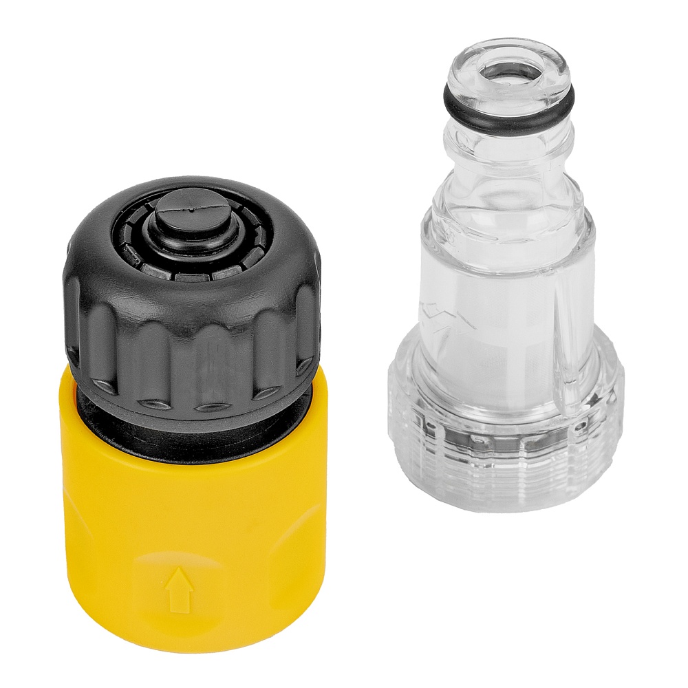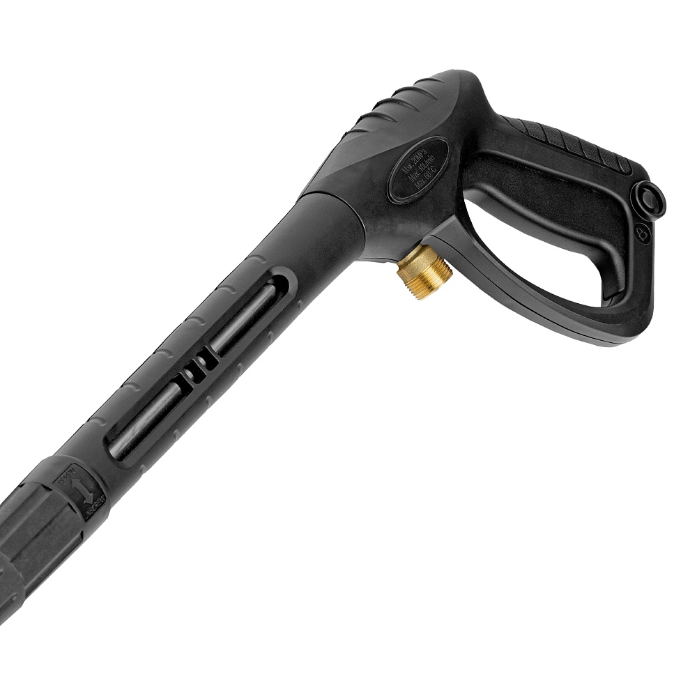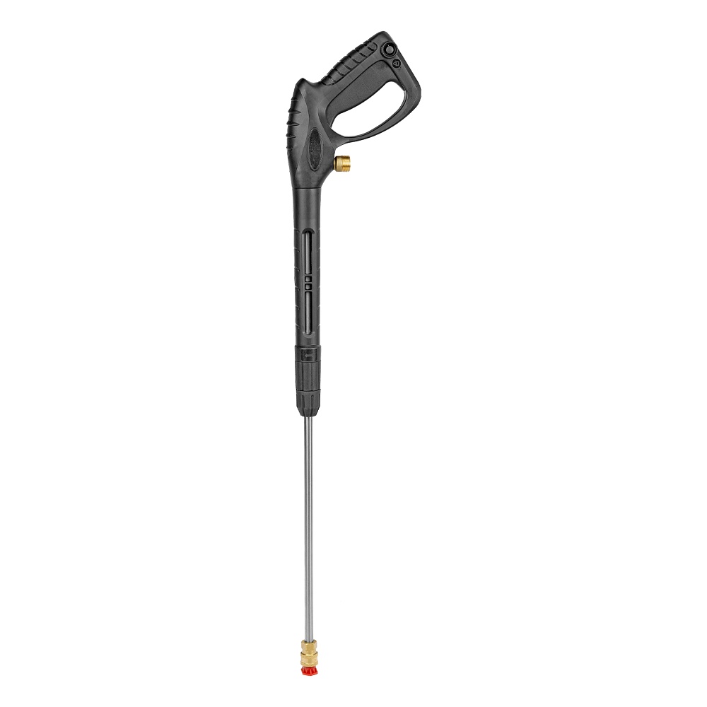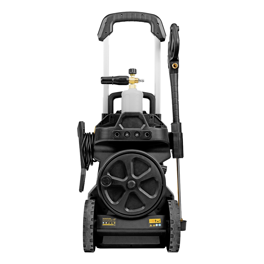 Мойка высокого давления, Барабан для шланга (установлен), Шланг высокого давления (установлен), Пистолет, Удлинитель пистолета, Сменные сопла 3 шт, Пеногенератор с бачком для моющего средства, Входной штуцер с фильтром, Быстросъемный коннектор шланга, кронштейн-держатель пистолета, Кронштей сетевого кабеля, Игла для прочистки сопла, Инструкция с гарантийным талоном
