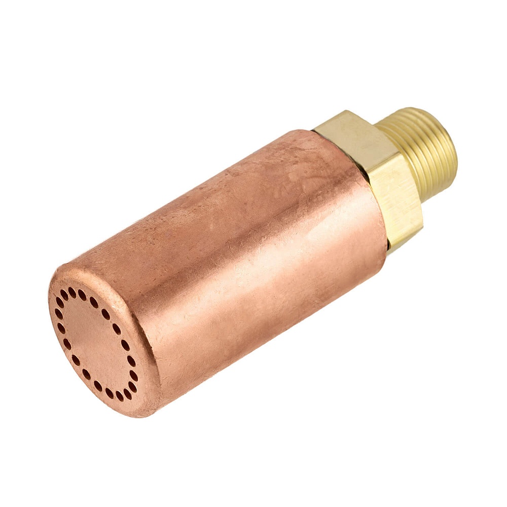 Сетчатый мундштук №8П для работы с горелкой ГЗУ-08. Мундштук выполнен из меди с латунным основанием для крепления к наконечнику. Мундштук крепится наружной резьбой М18х1,5 через накидную гайку к штуцеру наконечника. Мундштук №8П используется для работы на пропан-бутане или метане. Медный мундштук с отверстиями по диаметру обеспечивает вытянутый факел рабочего пламени с максимальной температурой нагрева. Максимальная температура пламени на пропан-бутане 2450°С, на метане – 2100°С.