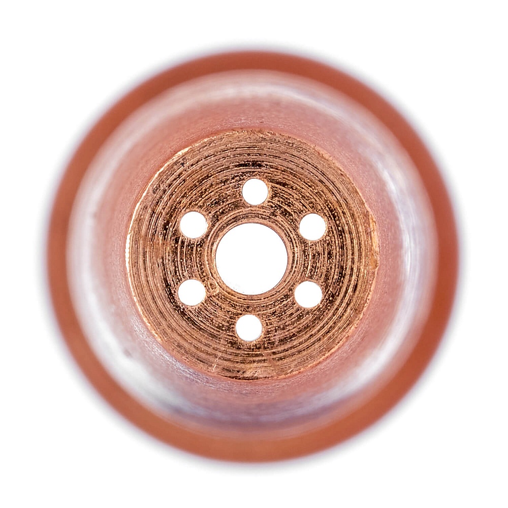 Латунный внутренний мундштук №2А для инжекторных ацетиленовых резаков Р2А-02М. Толщина разрезаемого металла 15–30 мм. Мундштук с шлицевыми пазами для выхода подогревающего пламени.