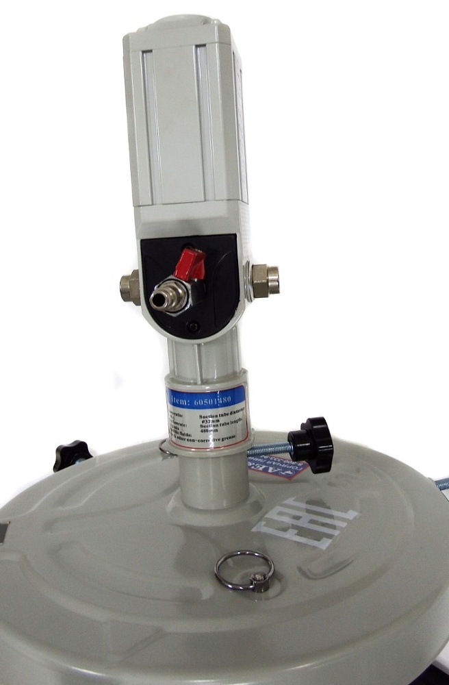 Устройство приводится в действие воздушным компрессором, что не создает искр во время работы и безопасно для экологии. Компрессор и тележка для перевозки бочки в комплект не входят.