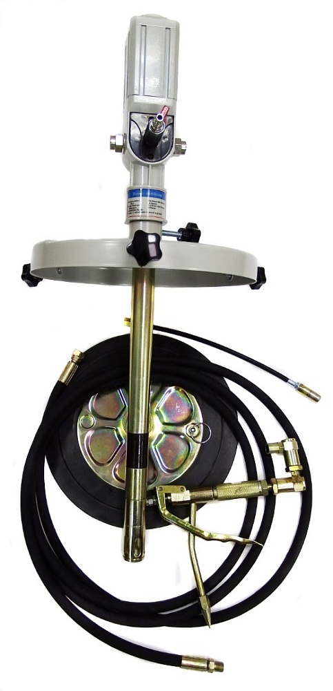 Для раздачи смазочного материала испанским концерном разработан и выпускается комплект с насосом для консистентной смазки. Это надёжное оборудование, выполненное из износостойких материалов на основе современных технологий, рассчитано на эксплуатацию в самых суровых и сложных условиях.