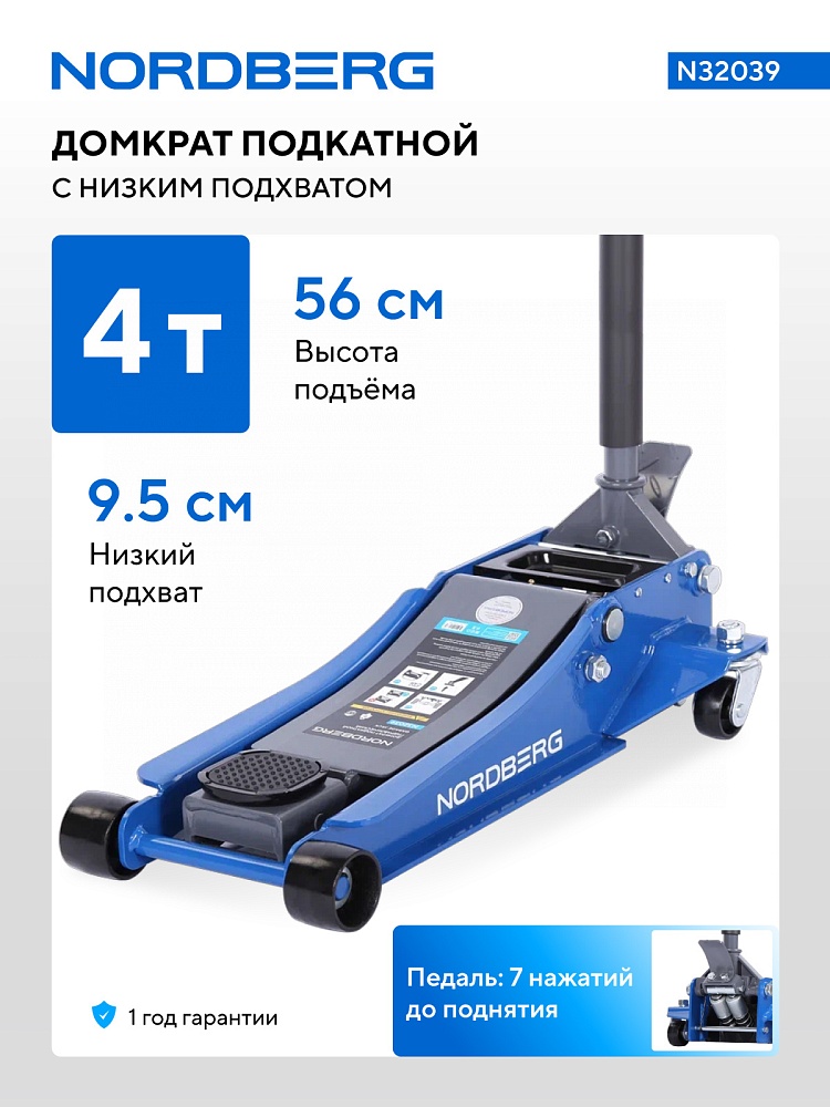Домкрат подкатной 4 т, низкий подхват, педаль NORDBERG N32039 купить в Воронеже цена ✅ - Все для СТО