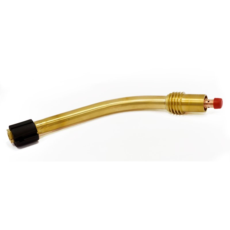 Гусак – заменяемая часть горелки для полуавтоматической сварки. Замена гусака может потребоваться в случае выхода из строя данного элемента либо необходимости выполнения специфичных сварочных задач. На гусак устанавливаются сопло и наконечник. В рукоятке горелки гусак подключается к силовому кабелю и шлангу подачи газа. Если горелка оснащена жидкостным охлаждением, на гусаке появляются фитинги для подключения воды.