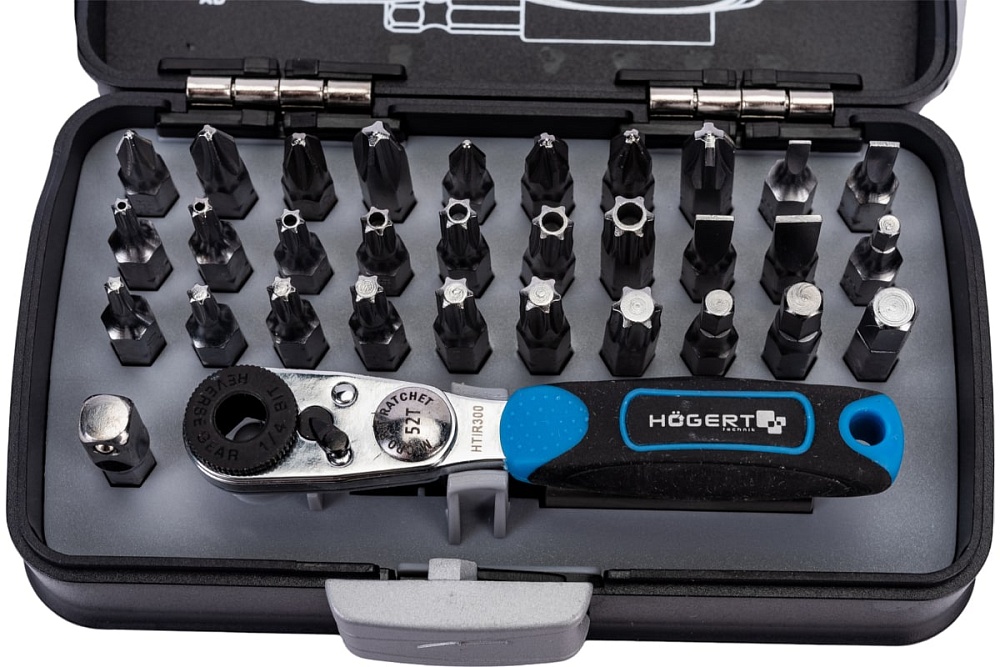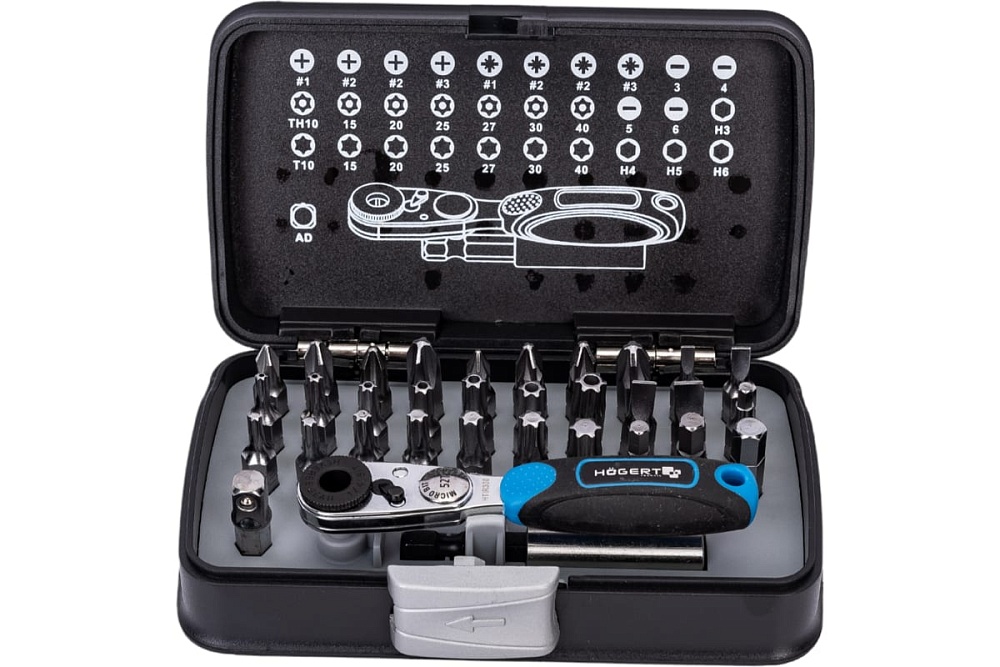 HOEGERT Набор бит с трещоткой 1/4", SL, PH, PZ, HEX, Torx, Torx c отверстием, 33 шт. купить в Воронеже цена ✅ - Все для СТО