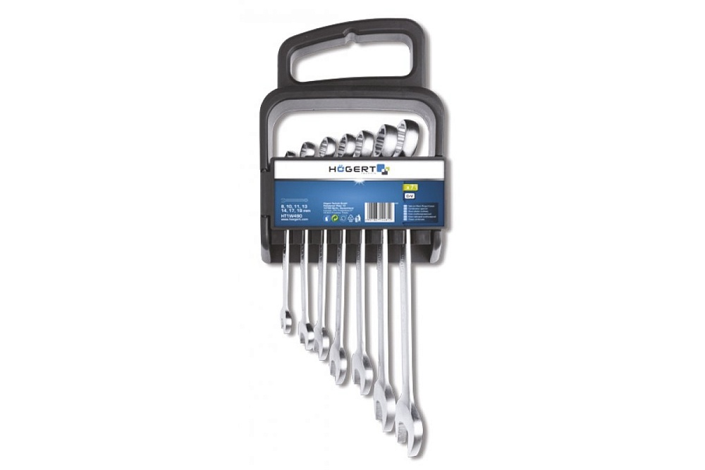 HOEGERT Набор комбинированных ключей 8-19 мм, 7 шт., сталь CrV, DIN 3113