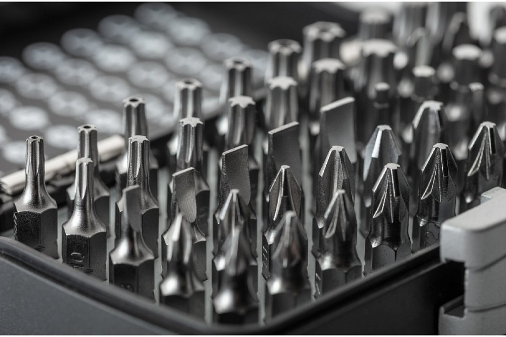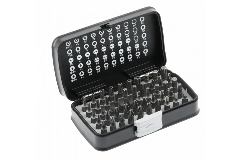 Набор отверточных бит в в удобном пластиковом кейсе для ручной работы и использования аккумуляторных электроинструментов.