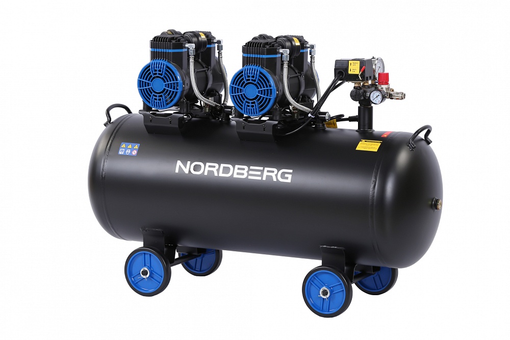 NORDBERG NCEO120/500 — безмасляный компрессор с ресивером 125 л и производительностью 500 л/мин.