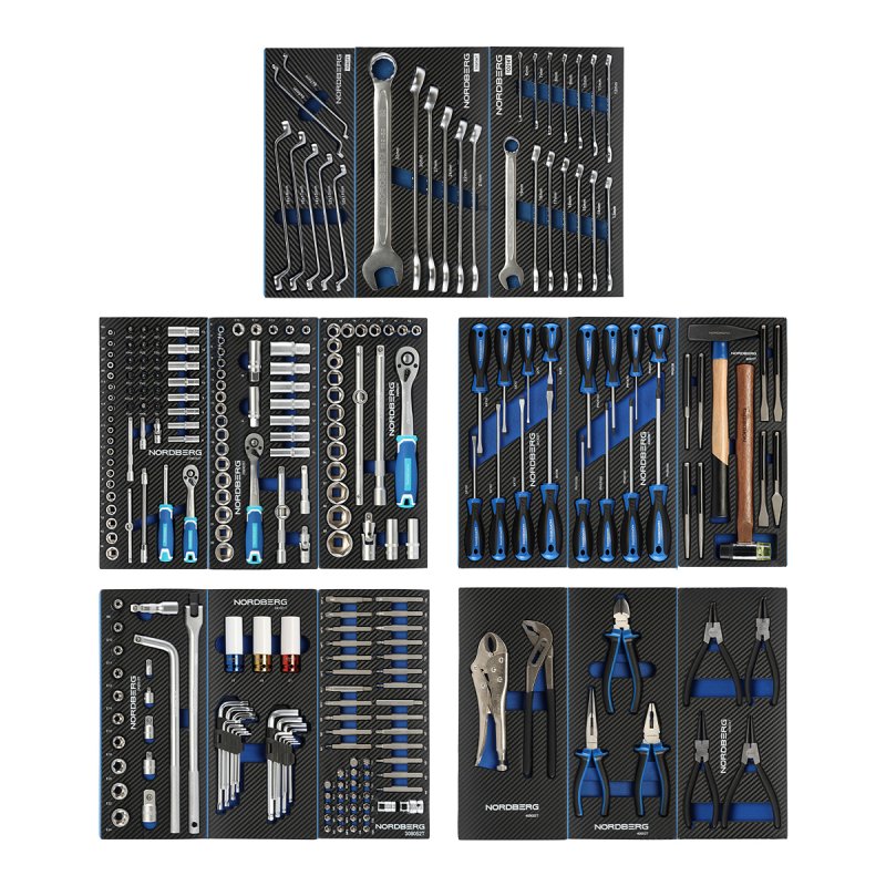 NORDBERG TS15265 — набор из 15 ложементов для инструментов, предназначенный для оснащения инструментальных тележек. Используется для организации рабочего пространства на станциях технического обслуживания (СТО), в автосервисах, автомастерских, а также в промышленности, строительстве и в быту. Оптимально подобранный комплект ложементов позволяет удобно разместить инструмент, необходимый для выполнения различных видов работ.