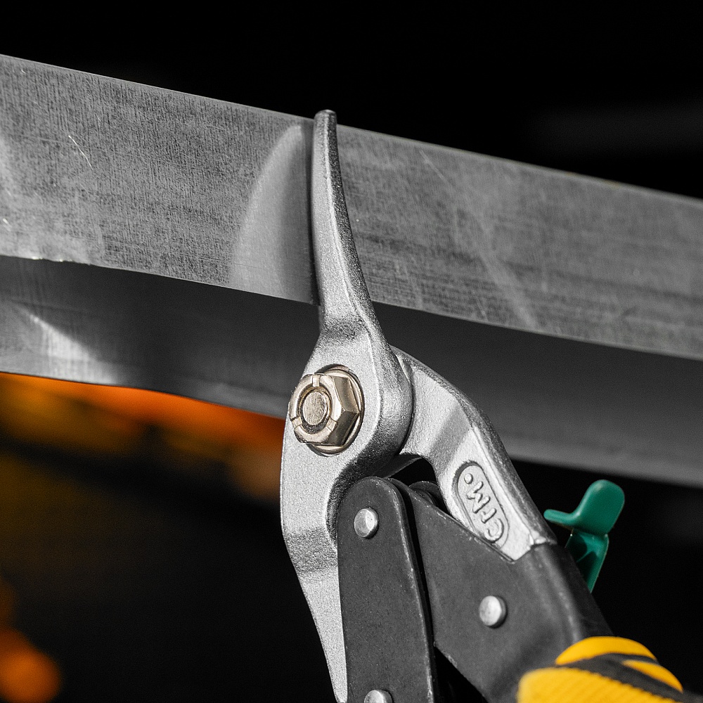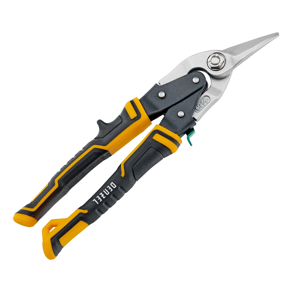 Ножницы по металлу, 270 мм, прямой и правый рез, сталь-СrMo, трехкомпонентные рукоятки Denzel