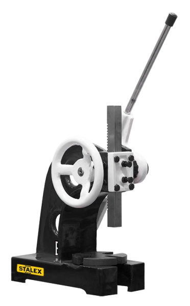 Используется в ремонтных и производственных целях. Благодаря высококачественным зубьям, пресс позволяет впрессовывать подшипники, втулки и различные другие детали небольшой высоты. Усиленная Т-образная конструкция из плотного металла не деформируется в процессе работы. Усилие с рукоятки на шток передается с помощью зубчатой шестерни. Модель оснащена маховиком вращения, отвечающего за быстрое вертикальное перемещение штока. С другой стороны станка размещён рычаг с храповым механизмом, который преобразует вращательное движение в однонаправленное прерывистое движение – для чёткой и надежной запрессовки\выпрессовки деталей и узлов.