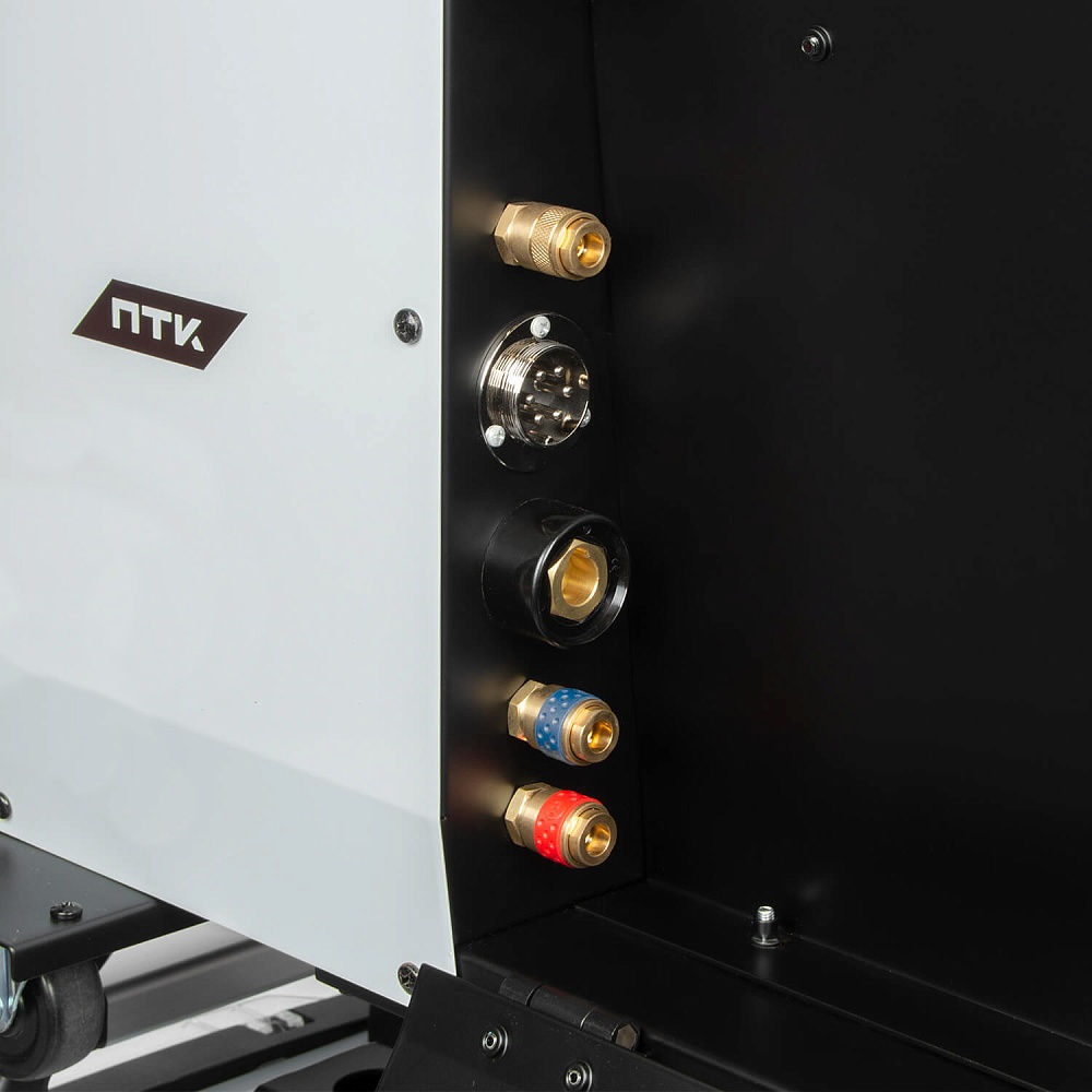 - К аппарату можно подключить аргонодуговые горелки с воздушным и водяным охлаждением. При этом возможна работа аргонодуговой горелки в режиме 2T/4T, т.е. сварка коротких и длинных швов.
