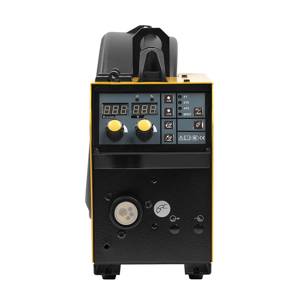 Аппарат полуавтоматической сварки с ПВ 100%. Синергетические и ручные настройки. Функция выбора газа и выбора типа сварочной проволоки. Наличие слотов памяти. 2Т/2TS/4ТS/SPOT режимы работы горелки. MMA сварка. 5 лет сервисной гарантии.