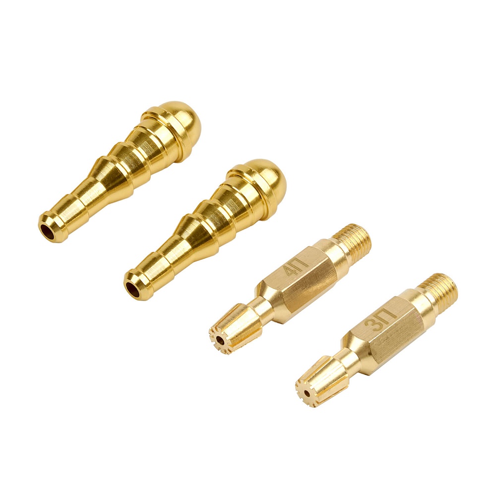 Резак поставляется с внутренними латунными мундштуками №2П, 3П, 4П с шлицевыми пазами для выхода подогревающего пламени и медным наружным мундштуком №1П. Давление газа на входе и расход зависит от установленного внутреннего мундштука. В руководстве по эксплуатации указаны ориентировочные данные.